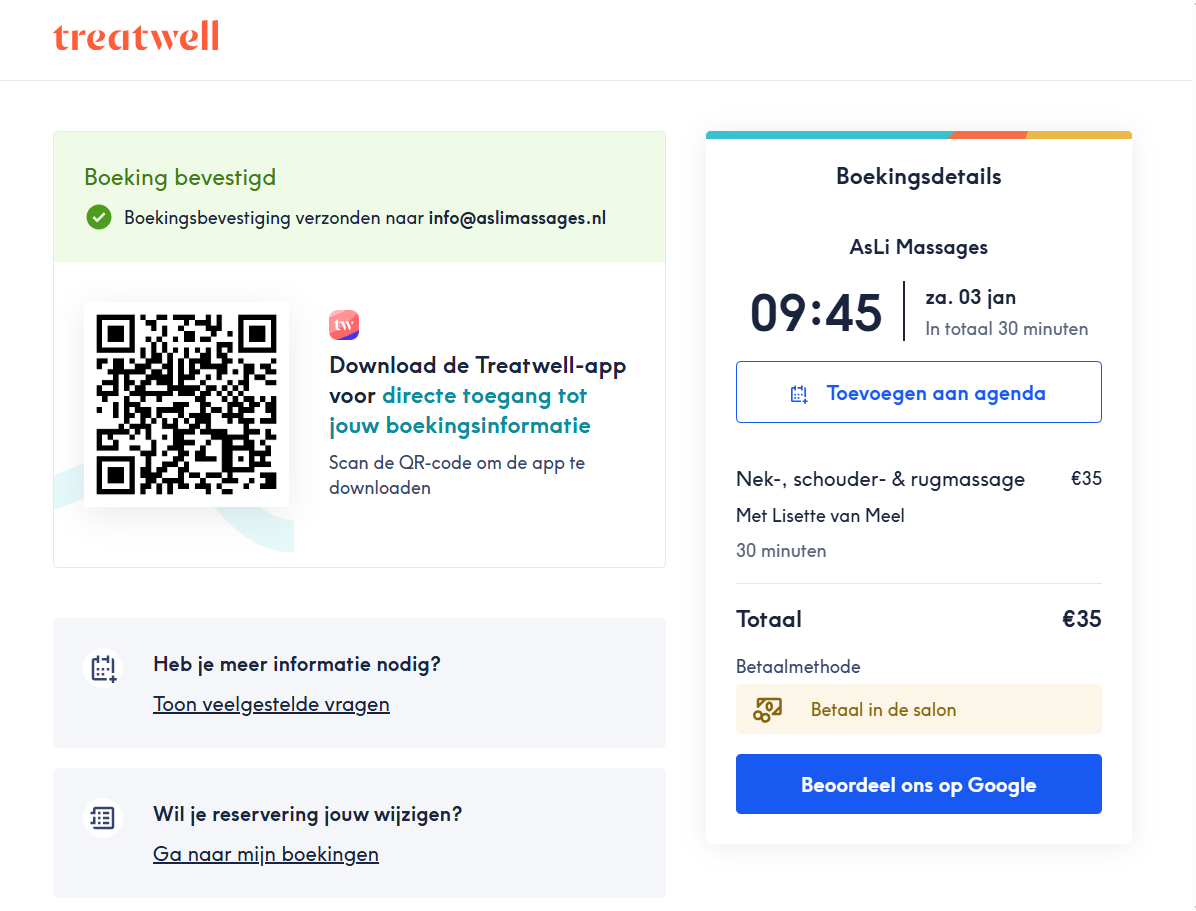 • Je kan zowel via Treatwell als via de reguliere website boeken.